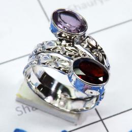 Amethyst cut & Garnet D - SDR739 - Amazing Designed Rings of Multi Gemstones & 925 Sterlin