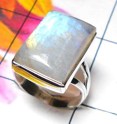 Wholesale sterling silver Rainbow moonstone gems Rings Collection-PSR951..