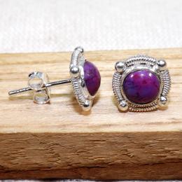 Purple Turquoise C - BLE999-5mm Round LightWeight Stud Earrings of 925 Sterling Silve