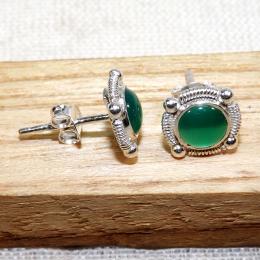 Green Onyx G - BLE999-5mm Round LightWeight Stud Earrings of 925 Sterling Silve