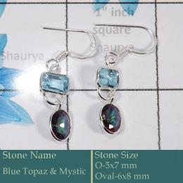 Blue Topaz & Mystic Cut G - BZE729-Classic 925 Silver Bezel Earrings Cut Gemstone Wholesale
