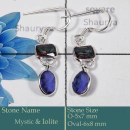 Mystic & Iolite Cut J - BZE729-Classic 925 Silver Bezel Earrings Cut Gemstone Wholesale