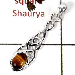 Tiger Eye Cab H - SSP819-Light Weight Cab Gemstone Celtic Design Pendant 925 Sterling Silver