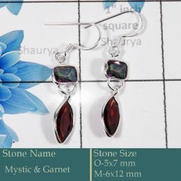 Mystic & Garnet Cut O - BZE730-Charming 925 Silver Bezel Earrings Cut Gemstone Wholesale