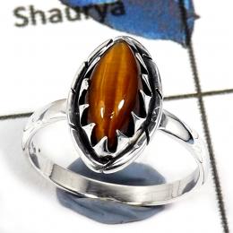 Tiger Eye Cab O - SCR806-Indian Factory Made Cab Gemstone Casting Ring 925 Sterling Silver