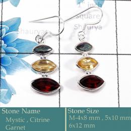 Mystic, Citrine & Garnet Cut O - BZE731-Solid 925 Silver Bezel Earrings Cut Gemstone Wholesale In