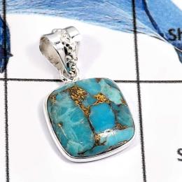 Blue Copper Turquoise H - BPS883-Glamorous Gemstone Blue Copper Turquoise Handmade Bezel Pendants 925 Sterling Silver
