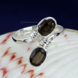 SMOKEY CUT A - SCR881- NEW DESIGNER NATURAL GEMSTONE RINGS MADE IN 925 STERLING