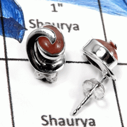 Rhodochrosite A - SSE838-Natural Cabochon Gemstones Handmade Fashion Stud Earrings 925 Sterling Silver