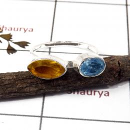 Citrine & Blue Topaz Cut O - STK942-Gorgeous Look Handmade Two Stone Stacking Ring 925 Sterling Silver