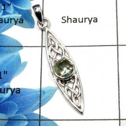 Green Amethyst Cut B - CSP897 - Solid 925 Sterling Silver Natural Green Amethyst Cut Gemstone Celtic Design Casting Pendant