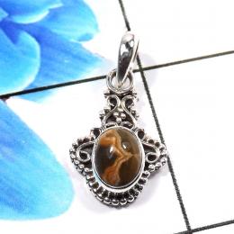 Tiger Eye J - ISP562-925 Sterling Silver Fabulous Gemstone Tiger Eye Plain Setting Pendants