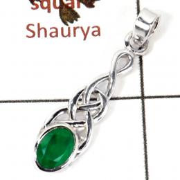 Green Onyx Cut C - SSP818-Solid 925 Silver Celtic Design Light Weight Pendant Natural Cut Gemstone