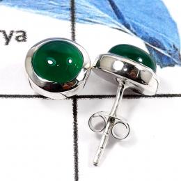 Green Onyx D - SSE841-Natural Cabochon Gemstones Party Wear Stud Earrings 925 Sterling Silver