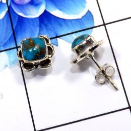 Blue Copper Turquoise I - SSE858-Beautiful Handmade Colorful Stud Earrings 925 Sterling Si
