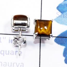 Tiger Eye E - SSE959-6mm Square 925 Sterling Silver Cab Gemstone Lightweight S