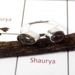 Black Rutile Cab B - STK937-Party Wear Two Gemstone Light Weight Stacking Ring 925 Sterling Silver