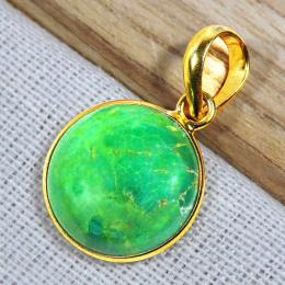 Green Turquoise G - BGP996-15MM Round Bezal 18 Crt Gold Plated 925 Sterling Silver P
