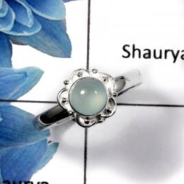 Blue Aqua Chalcedony C - RBS847 - Solid 925 Sterling Silver Natural Blue Aqua Chalcedony Cab Gemstone Ring 925 Sterling Silver