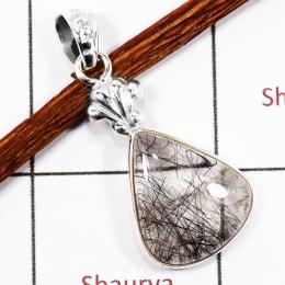 Black Rutile Cab H - BPS906-Natural Cab & Cut Golden Rutile Bezel Pendants 925 Silver Handmade Collection