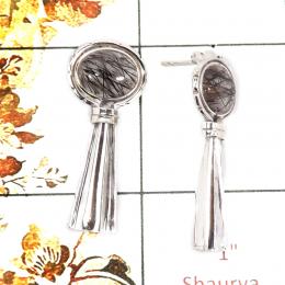 Black Rutile Cab B - BZE708-Newly Handmade Design Bezel Earrings 925 Sterling Silver Cab Gemstone