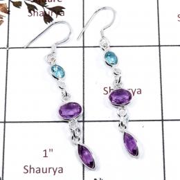 Blue Topaz & Amethyst C - BZE719-Beautiful Three Cut Stone Handmade Bezel Earrings 925 Ste