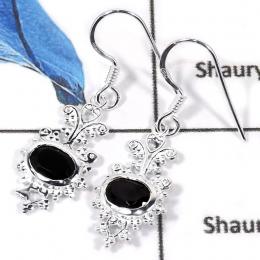 Black Onyx Cut I - CES940-Natural Cab & Cut Gemstone Casting Earrings 925 Sterling Silver