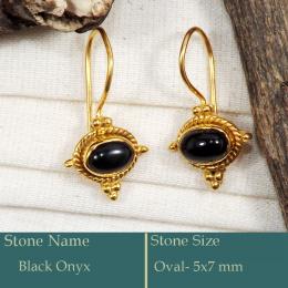 Black Onyx Cab G - CMJ859-Party Wear 925 Silver 18K Gold Plated Designer Earrings C