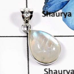 Rainbow Moonstone F - BPS826-Sparkling Gemstone Rainbow Moonstone Wholesale Bezel Pendants 925 Sterling Silver