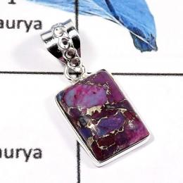 Purple Turquoise F - BPS838-Glorious Look Colorful Bezel Pendants 925 Sterling Silver