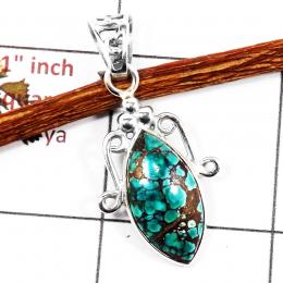 Green Turquoise G - BPS880-Natural Gemstone Green Turquoise Wholesale Bezel Pendants 925 Sterling Silver