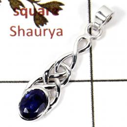 Iolite Cut H - SSP818-Solid 925 Silver Celtic Design Light Weight Pendant Natural Cut Gemstone
