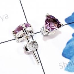 Amethyst Cut B - SSE963-7mm Triangle 925 Sterling Silver Faceted Gemstone Stud Ea