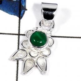 Green Onyx Cab A - SD564-Solid 925 Sterling Silver Designer Pendant Semiprecious Cab Gemstone