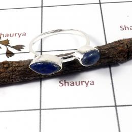 Lazuli Lapis Cab O - STK937-Party Wear Two Gemstone Light Weight Stacking Ring 925 Sterling Silver