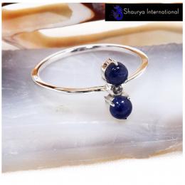 Lapis Cab & White Topaz Cut A - SFJ910-New Collection Solid 925 Silver Three Stone Light Weight Tiny Ring