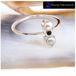 Pearl Cab & Black Onyx Cut B - SFJ910-New Collection Solid 925 Silver Three Stone Light Weight Tiny Ring