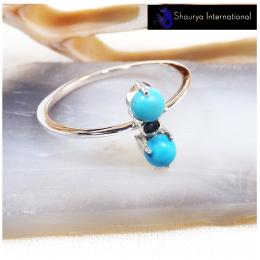 Blue Turquoise & Kyanite Cut C - SFJ910-New Collection Solid 925 Silver Three Stone Light Weight Tiny Ring