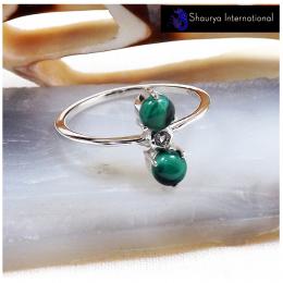 Malachite Cab & White Topaz Cut F - SFJ910-New Collection Solid 925 Silver Three Stone Light Weight Tiny Ring