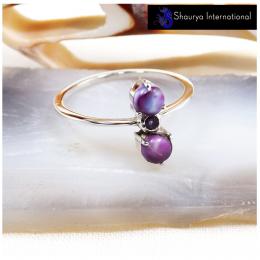 Amethyst Cab & Cut E - SFJ910-New Collection Solid 925 Silver Three Stone Light Weight Tiny Ring