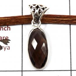 Smokey Cut C - BPS907-Handmade Design 925 Sterling Silver Bezel Pendant Smokey Cut Gemstone