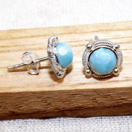 Larimar F - BLE999-5mm Round LightWeight Stud Earrings of 925 Sterling Silve
