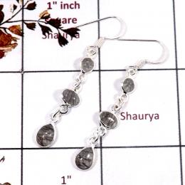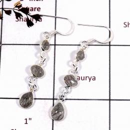 Black Rutile M - BZE724-Exclusive Three Stone Wholesale Bezel Earrings 925 Sterli