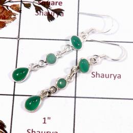 Green Onyx E - BZE725-Light Weight Party Look Bezel Earrings 925 Sterling Silve