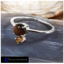 Tiger Eye Cab & Citrine Cut J - SFJ908-Superb Light Weight Cab & Cut Two Stone Midi Ring 925 Sterling Silver