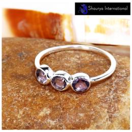 Amethyst Cut F - SFJ911-Stunning Look Three Cut Gemstone Light Weight Ring 925 Sterling Silver