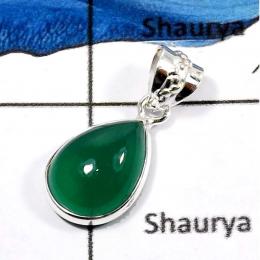Green Onyx D - BPS858-Exclusive Gemstone Green Onyx Small Bezel Pendants 925 Sterling Silver