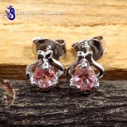 Pink Tourmaline B - SFJ960-4 Round Gorgeous Design Pink Tourmaline Cut Stud Earrings