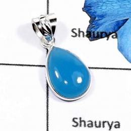 Blue Chalcedony F - BPS846-Natural Blue Chalcedony Wholesale Bezel Pendants 925 Sterling Silver