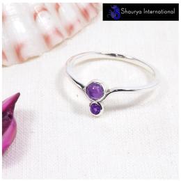Amethyst Cab & Cut O - SFJ914-Light Weight Two Gemstone Solid 925 Silver Tiny Ring Cab & Cut Gemstone